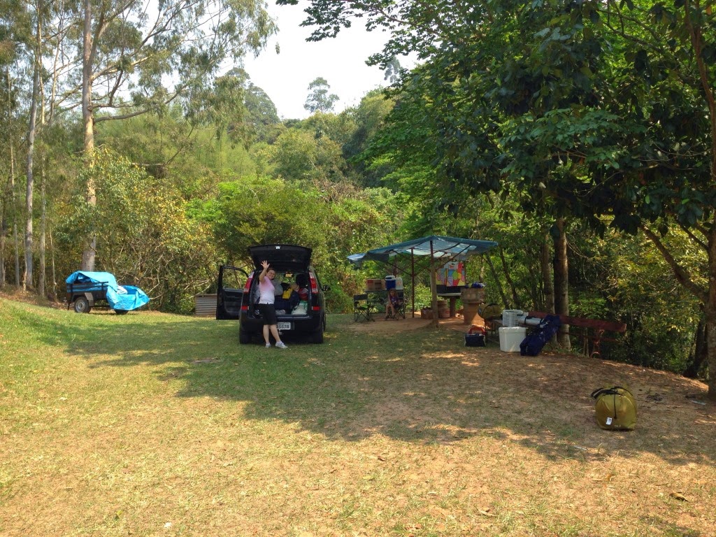 Demos início então à montagem das tralhas. Como estávamos com a nossa companheira, a carretinha, acabamos levando as tralhas dos nossos amigos, como térmicas e barracas, que acabamos montando, contando com o apoio do Kobaia e da Tereza, do Blog Família Boituva http://familyaboituva.blogspot.com.br/