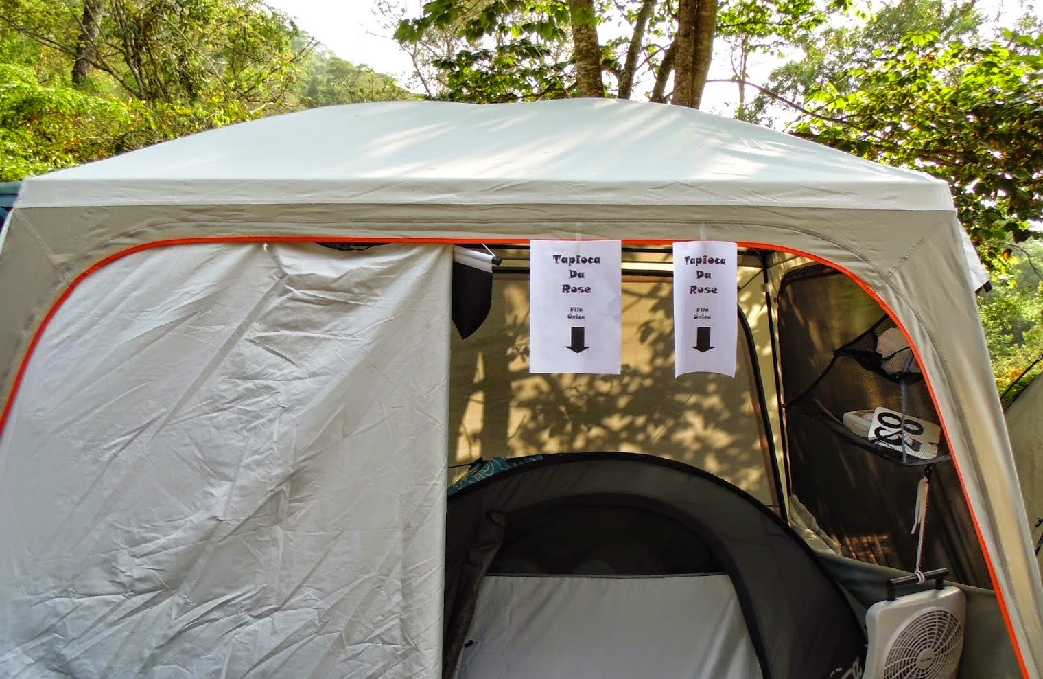 Bom, esse casal, Danilo e Rose são gente boa demais, porém há algo desabona o ilustre casal: o sono. Eles costumam sempre acordar mais tarde que os colegas, mas dessa vez pagaram um preço alto por isso. Os outros mentes insanas, o casal Marcelo e NATAIR (Thais), do Camping a Dois, que mais tarde falaremos algo sobre eles, tiveram a idéia de fazer algumas plaquinhas fazendo propaganda da Tapioca da Rose. Falava algo do tipo: